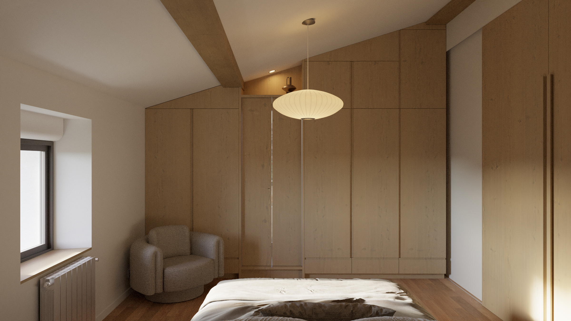 Le projet consiste en la rénovation complète d’un étage comprenant deux chambres, une salle de bain et un accès à la terrasse.